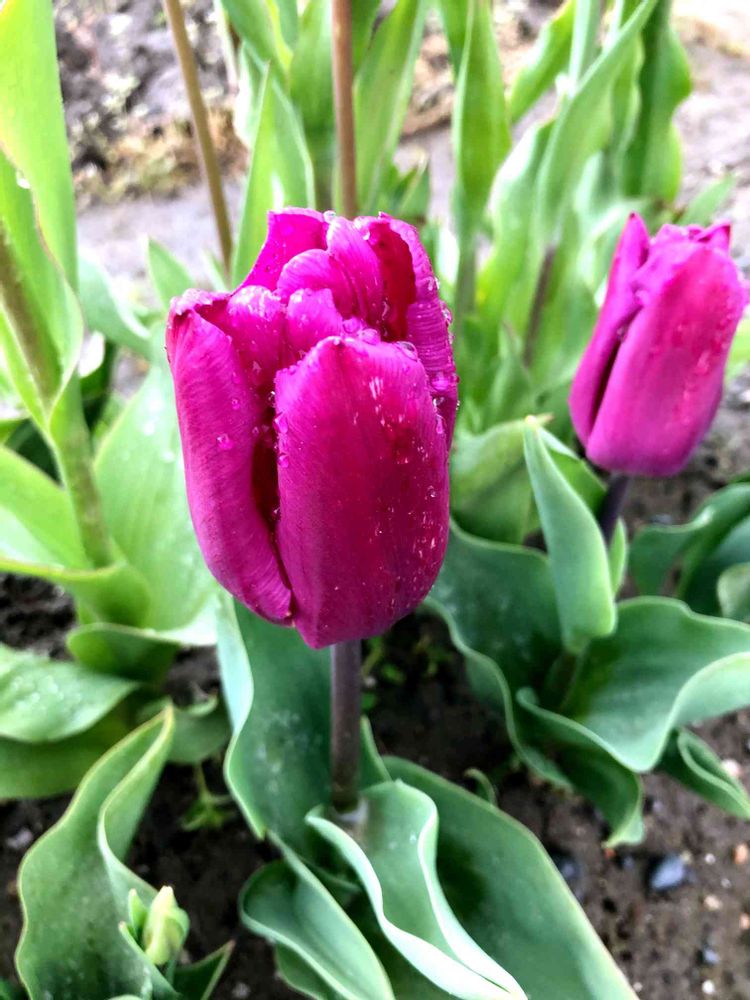 雨に濡れた☔️チューリップ🌷🌷🌷🌷🌷素敵。綺麗ですね。大人の、チューリップ🌷だワン🐶👶🌸💝💕👏