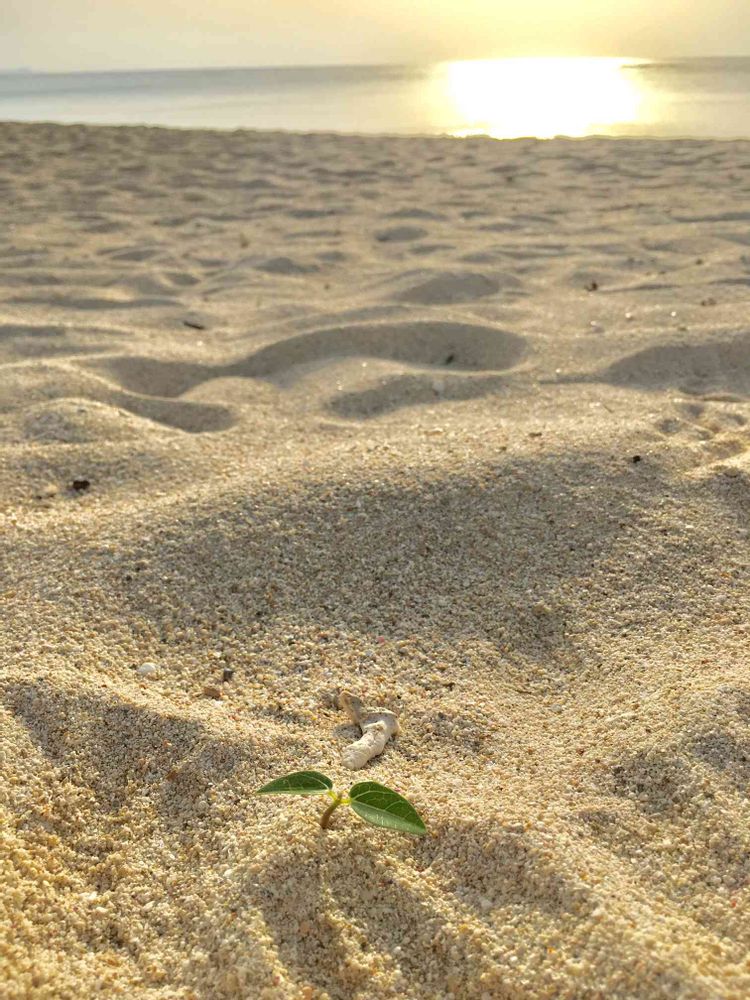 砂浜を散歩していたら🚶🏻♀️何かの小さな芽を