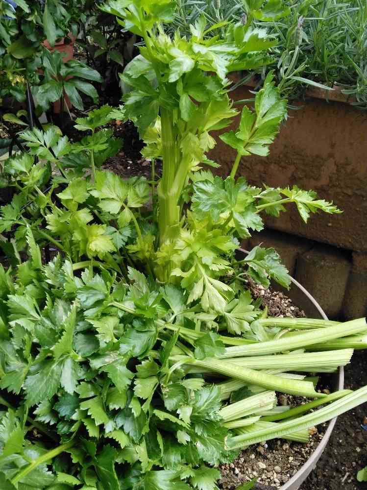 セロリも家庭菜園できるのね💕お昼はセロリどうやって食べるのかしら?