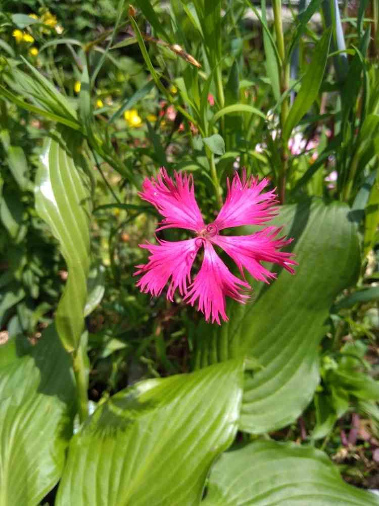 なんて素敵な色なの⁉️ カワラナデシコってもっと淡いピンクを想像してました。切れ込みが細かく深くめちゃくちゃ綺麗‼️ヤグルマギクと混同するのちょっと分かった気がします。