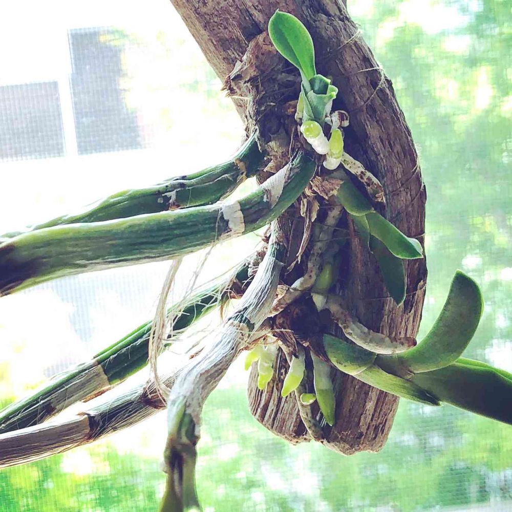 発泡スチロールとかでギチギチに鉢に植えられてて、花が終わって破格で売られていたコです。初めて着生させたコで、これでいいのかなぁと手探り状態で育ててます。ノビノビ裸ん坊がこのコに合っているみたいで良かったです😋