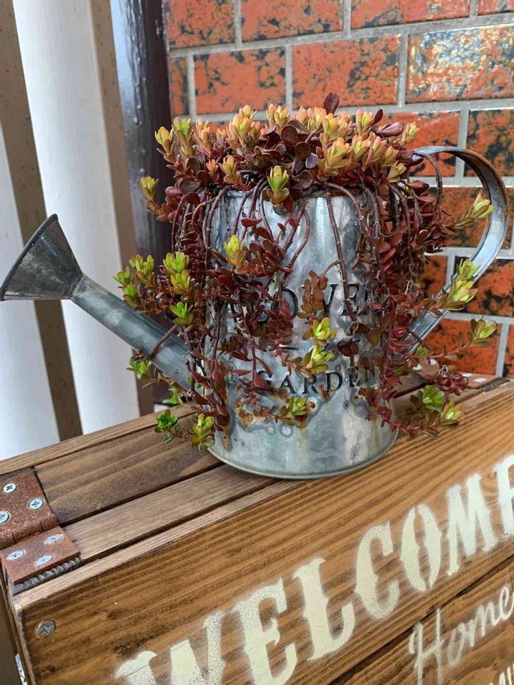 こんにちは😃こんなにセダムって伸びるんですね♪アンティークな色合いで素敵ですね❤️言葉に愛情を感じます♪見習わなきゃ〜❣️