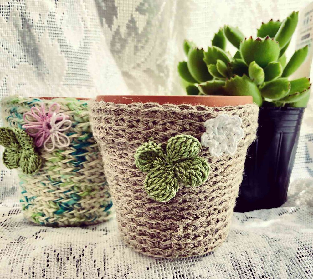 麻の糸で鉢カバー編んでみた🧶❤️😅