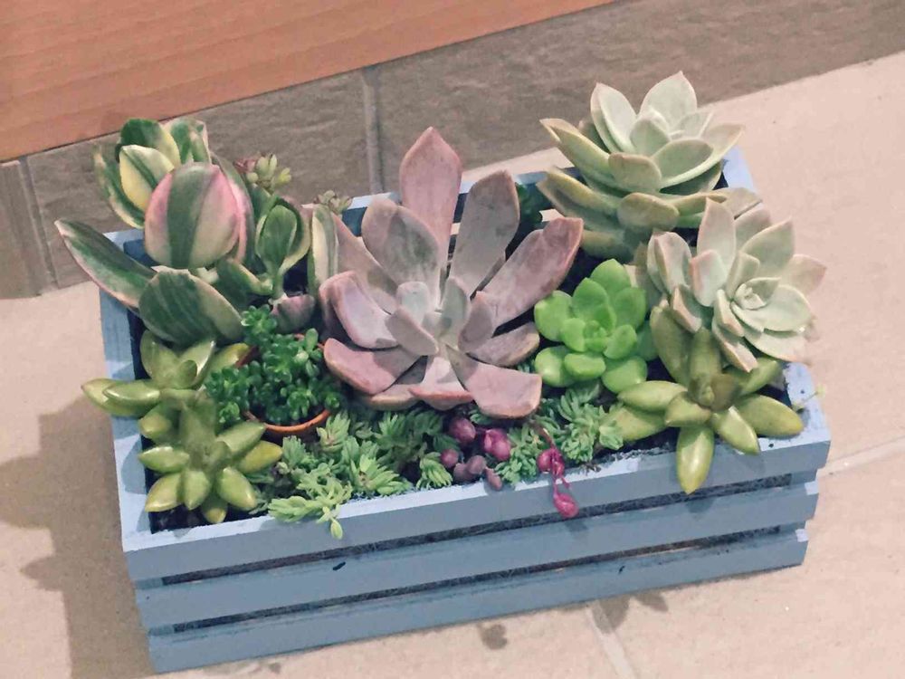 セリアの木箱?に色を塗って〜ココヤシファイバーで内張して〜寄せ植えっ🎶