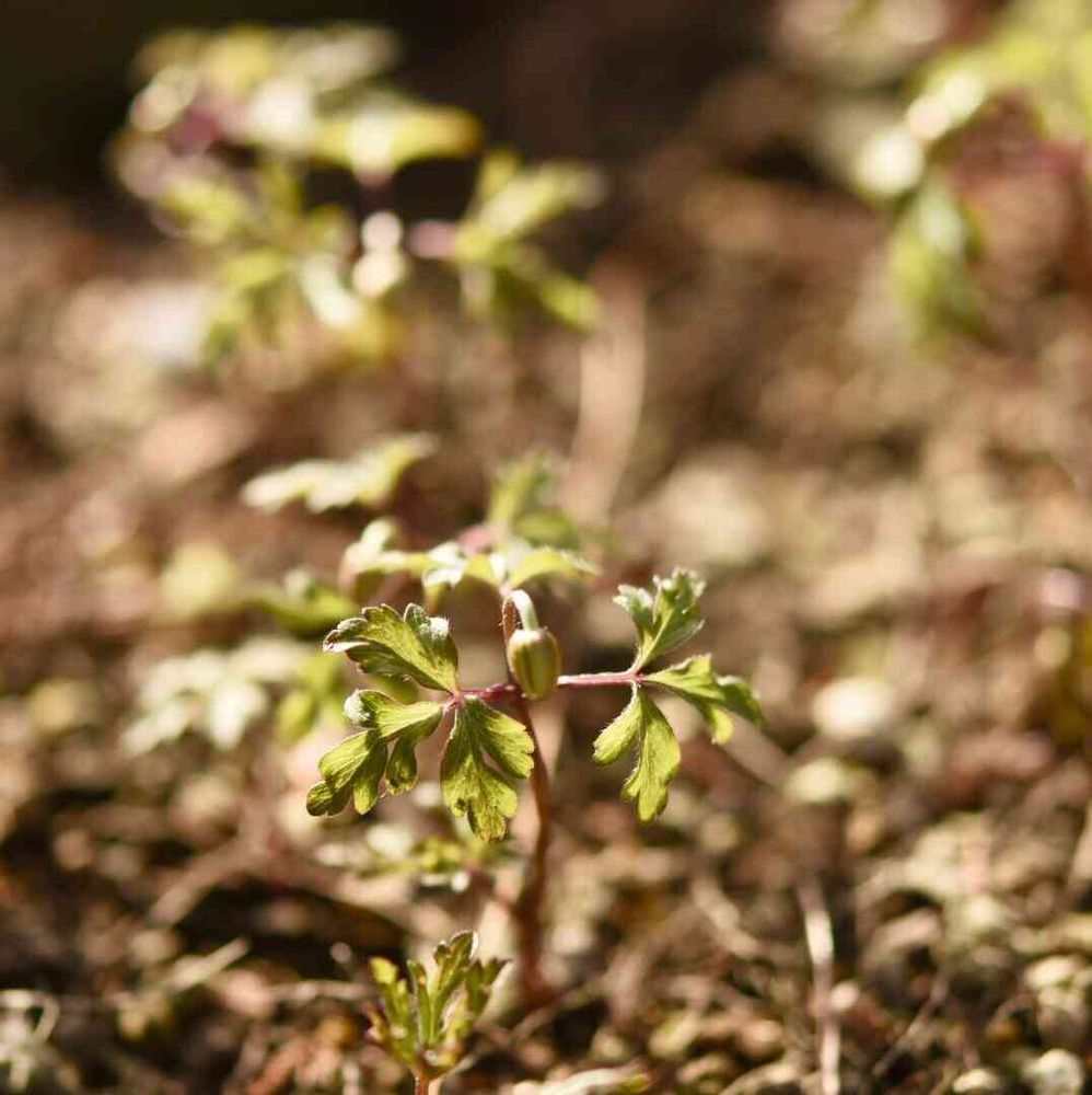 庭の八重咲きイチリンソウ、蕾をつけました。