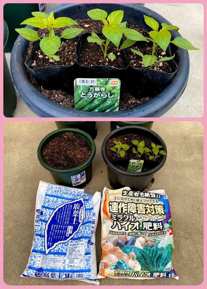 先週、元気そうな万願寺とうがらしの苗を見つけ、3株入手済みを植えます。