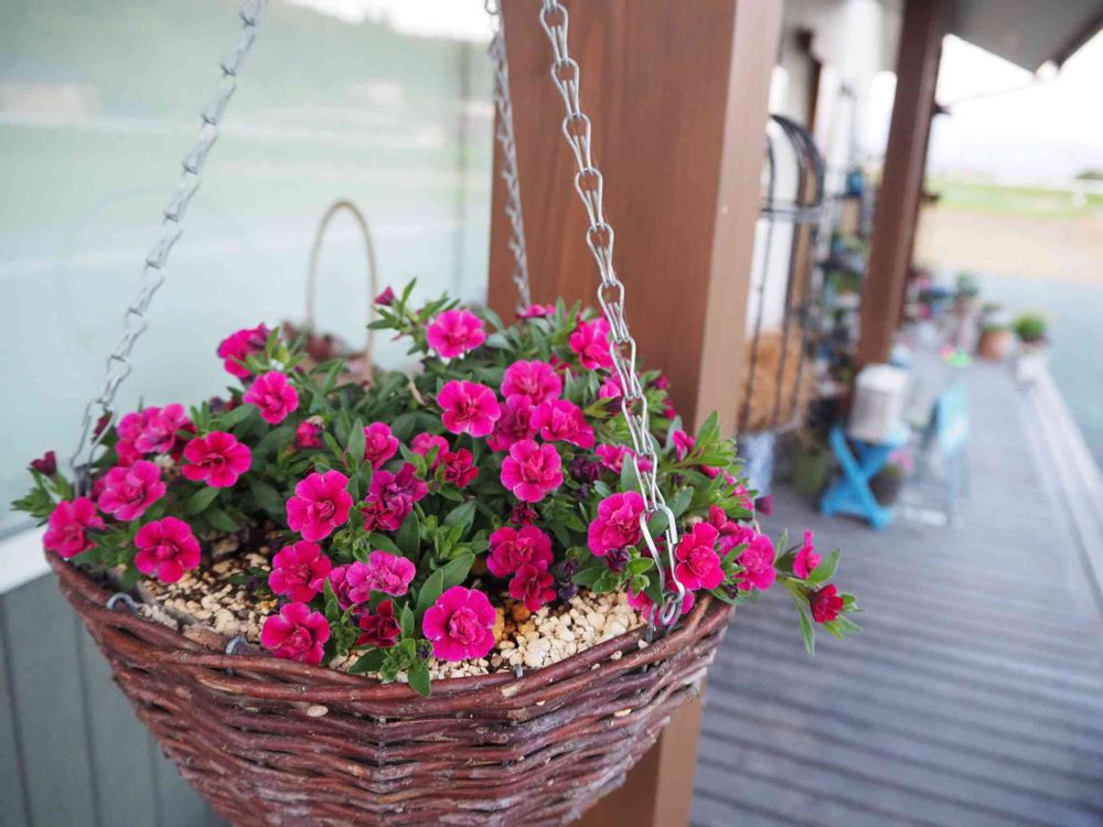店舗兼住居で美容室。 庭づくり進行中。玄関前のウッドデッキで花を買っては、鉢に植え替えて楽しんでます🎶