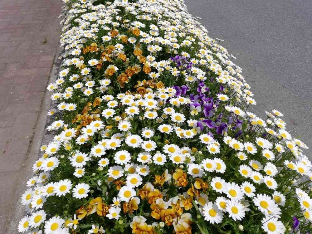 綺麗な、花壇のお花ですノースポール、パンジービオラでいっぱいです。