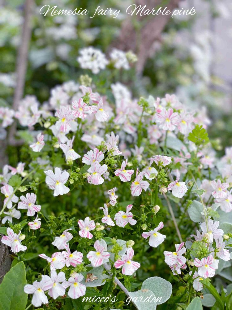 地植えネメシア フェアリーマーブルピンクが沢山増えて可愛いです꒰ •ω• ꒱゚+。:.゚ஐ♡