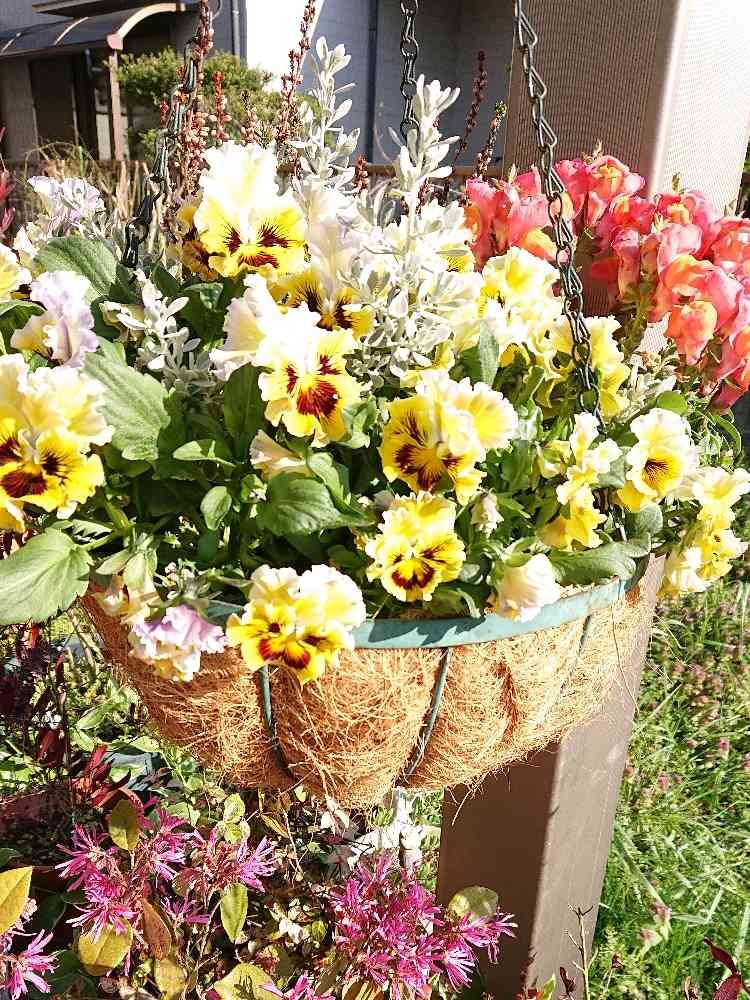 お花の寄せ植え華やかで見てても優しい気持ちになるー😉