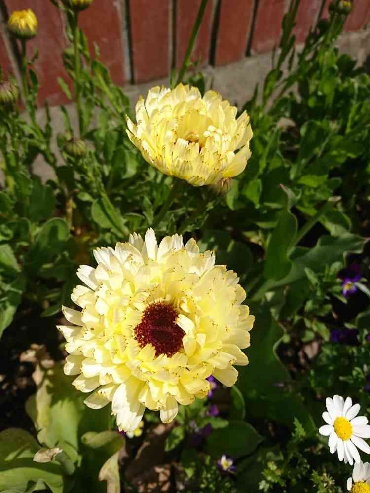 近くに咲いています。キンセンカの仲間だと思います。オレンジではなく、薄い黄色もまた可愛い❗
