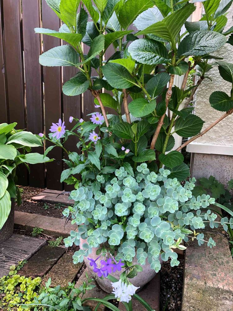 コスモスラブさんの小さな庭,寄せ植え,アジサイ 紫陽花の投稿画像