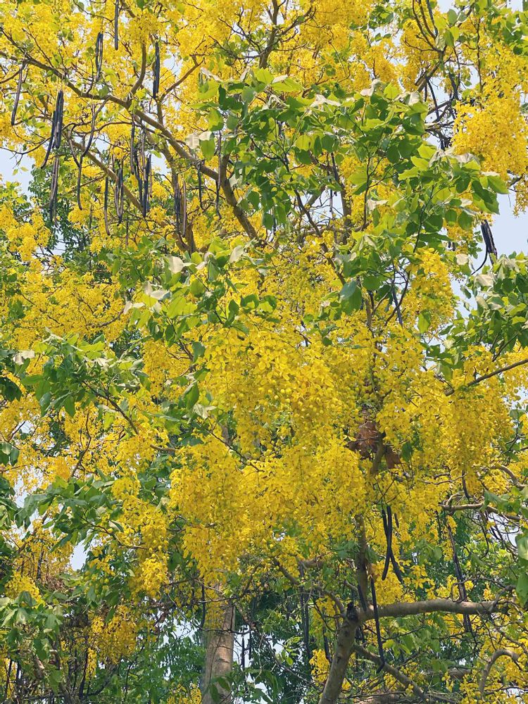 タイの国花、ゴールデンシャワー。タイ語ではราชพฤกษ์(ラーチャプルック)といい、一年で最も暑いこの時期に咲き誇ります。日本の桜よろしく、これでもかというほどあちこちにあり、一面真っ黄色に染まります。