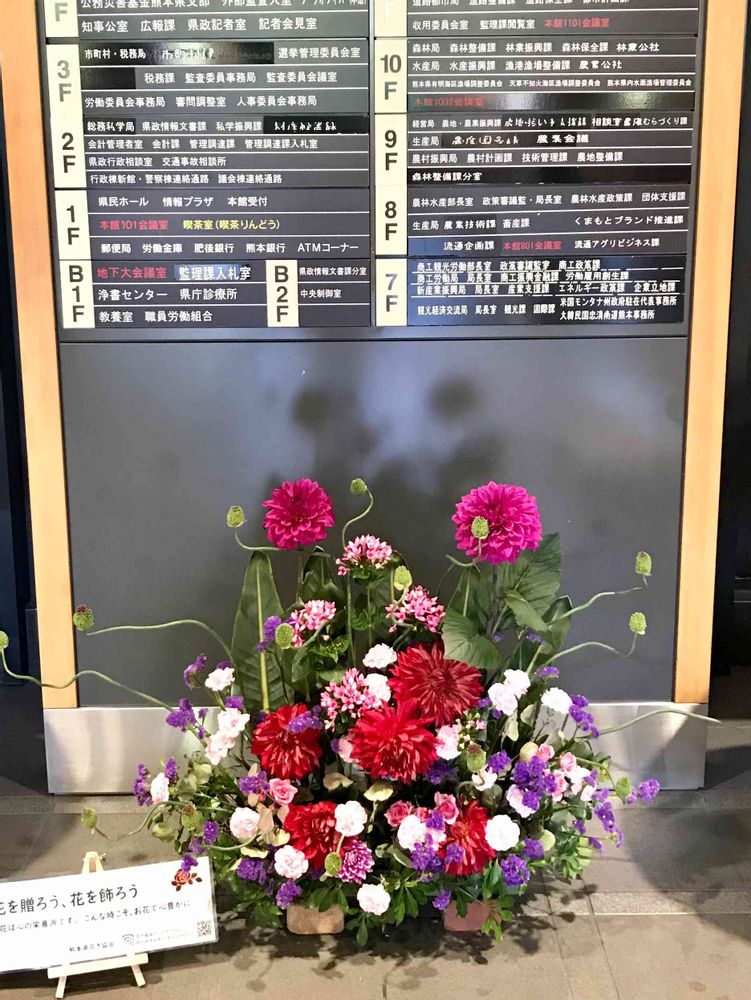 熊本県庁本館一階のエレベーター前に飾ってある花🌸