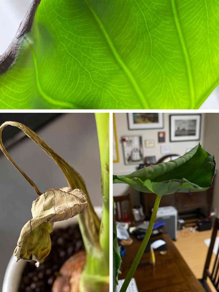 海老芋のある生活。最初の葉っぱが枯れて2番目が広がってる。そして第三のが…。