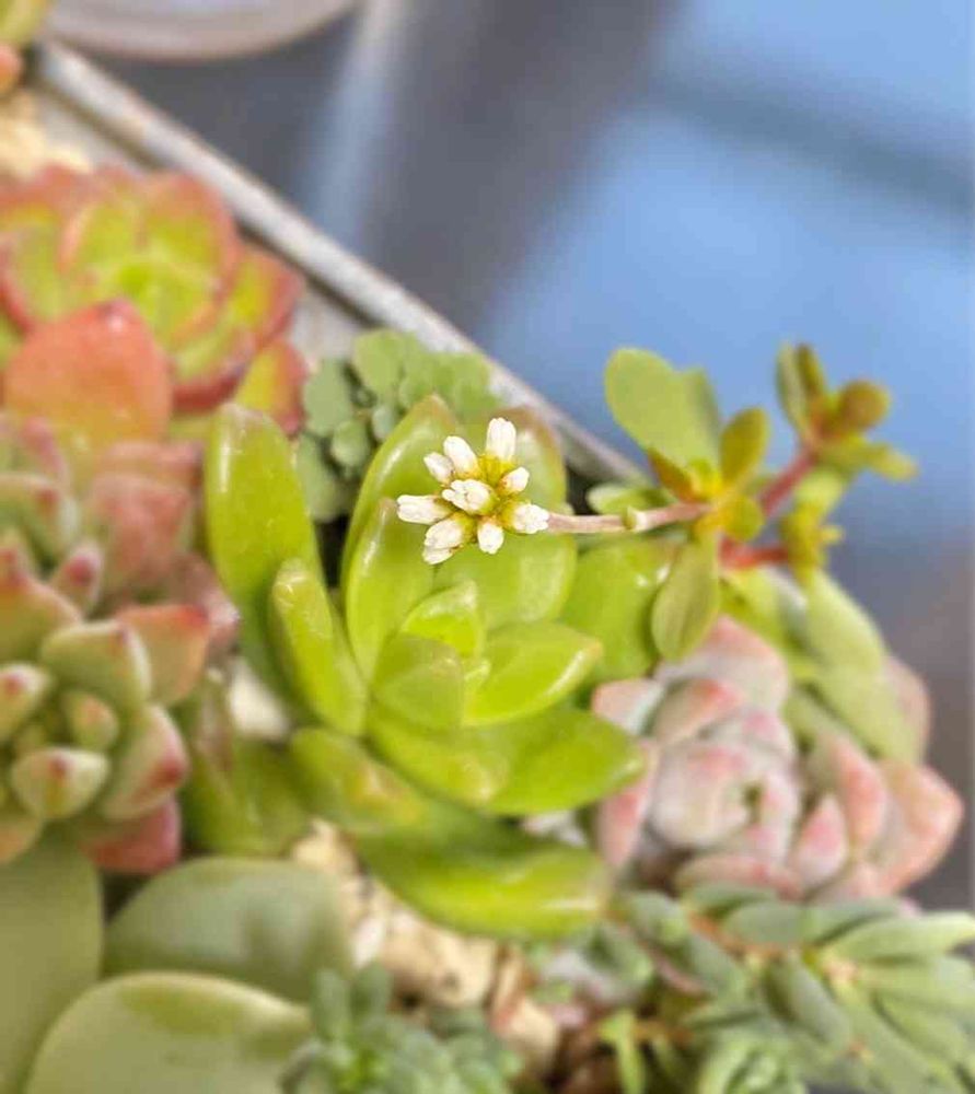 寄せ植えの中に小さなお花がちょこんと☺️