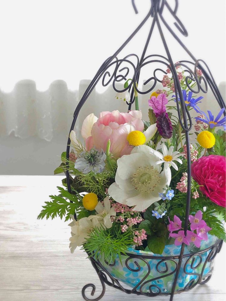 お庭に咲くお花たちでアレンジメント✿*:・゚