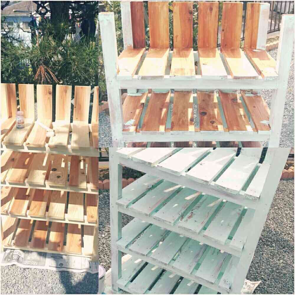 棚は知り合いの大工さんにタダで作ってもらい私は防腐ステインとペンキ塗っただけー笑