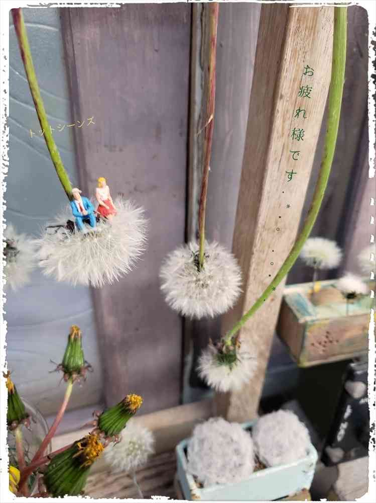 さん、こんにちは😊この2人💕👫💕いい仕事してくれるんです😆何だかほんとにブラブラしてるみたいに見えますよね💡タンポポドライ🍀 買い物の途中の道とか、家の外とかに 咲いてないですか?アケさんのコメントの上の eriさんのお部屋の“ みどりのまとめ”で、すごく分かりやすく解説してくれてるので、気が向いたら是非🙏😊