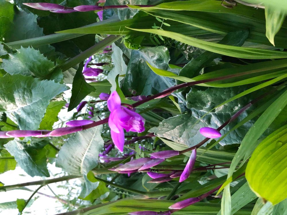 駐車場の小さい植え込みに、カラスのエンドウとかと一緒に咲いていました…ちょっとキリン🦒の顔みたい。シュッとした蕾も可愛い❣️