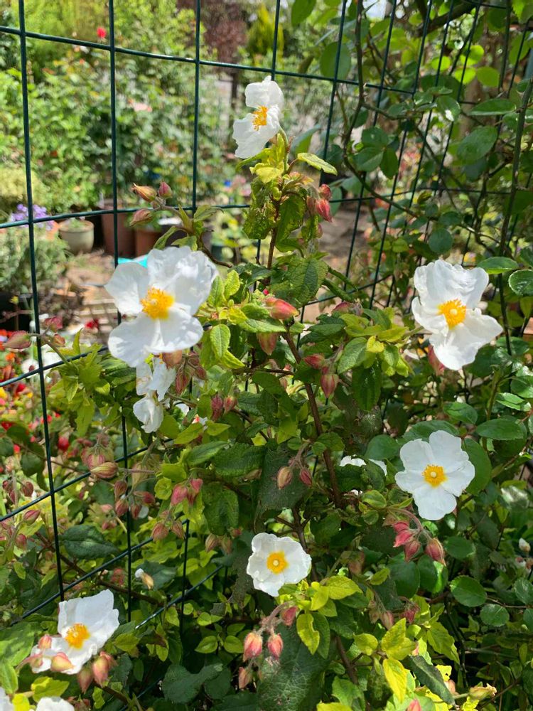 これはなんだったか。斑入りの葉っぱがいいとおもって植えたら、3年目で咲き始めました。シスタスミッキーと教えていただきました。