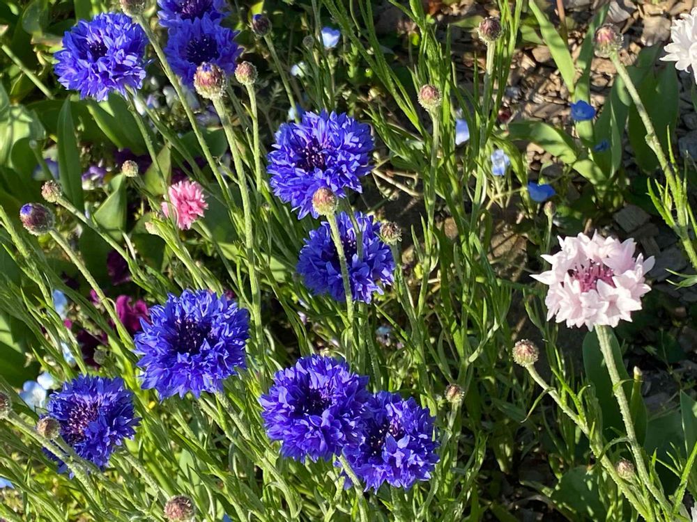 世話している近所の公園で。この矢車菊は去年とった種から、のものです。他に濃いピンクと薄いピンクもあります。