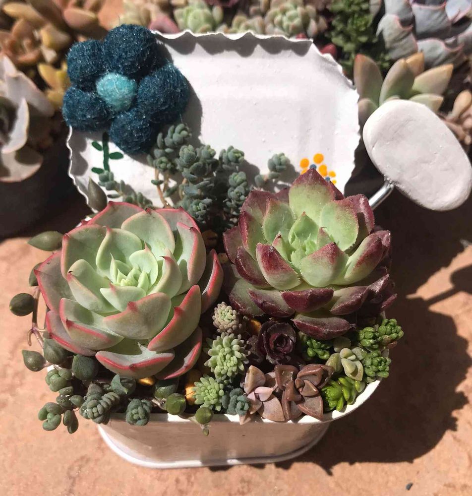シンプルに作ってみました‼︎コンビーフ缶なので小さい子達です。多肉狩りに行けないのでメルカリにお世話になりました🤗