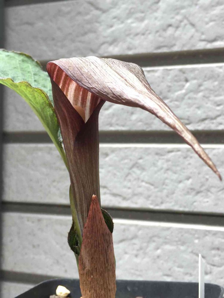 キリシマテンナンショウの1形態とされる事も。分類上では同種、けれどこのタイプは大型化しません。