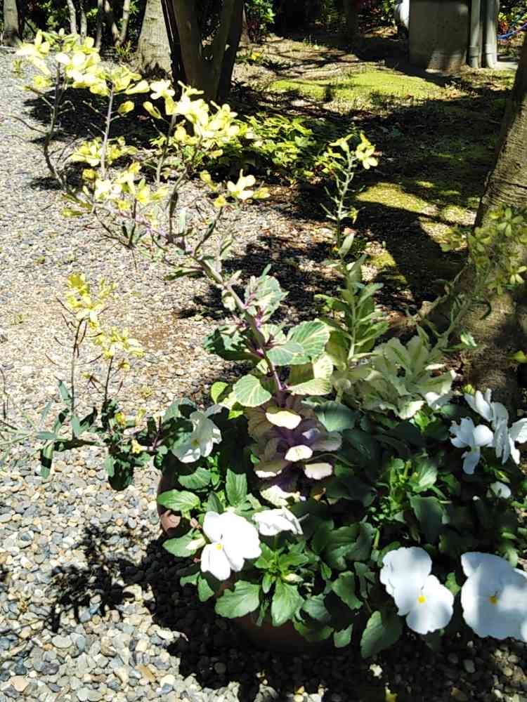 お正月に植えた葉牡丹が今ごろ花盛り。