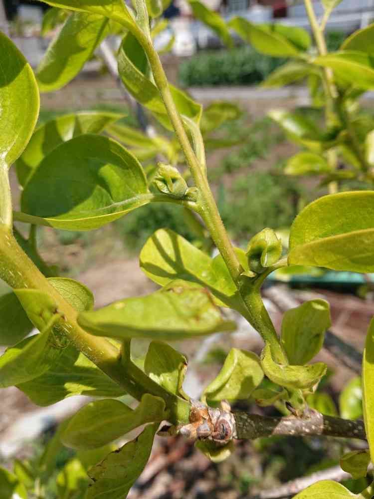 3-4年以前にカインズホームで購入した柿の木今年の柿が初めて食べられるかな?蕾が有るんです。