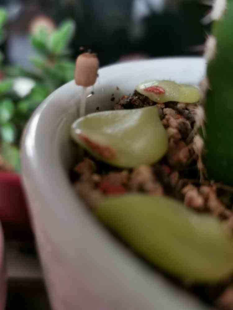 培養土に菌が入っていたのでしょうか。ほんものですよ(´∀`*)1日たったら縮んでました。