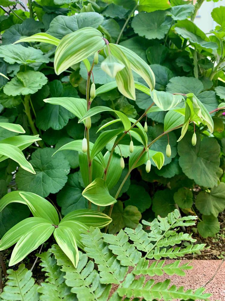 シェードな我が家の庭でナルコユリが白い花の蕾を付けていました😊