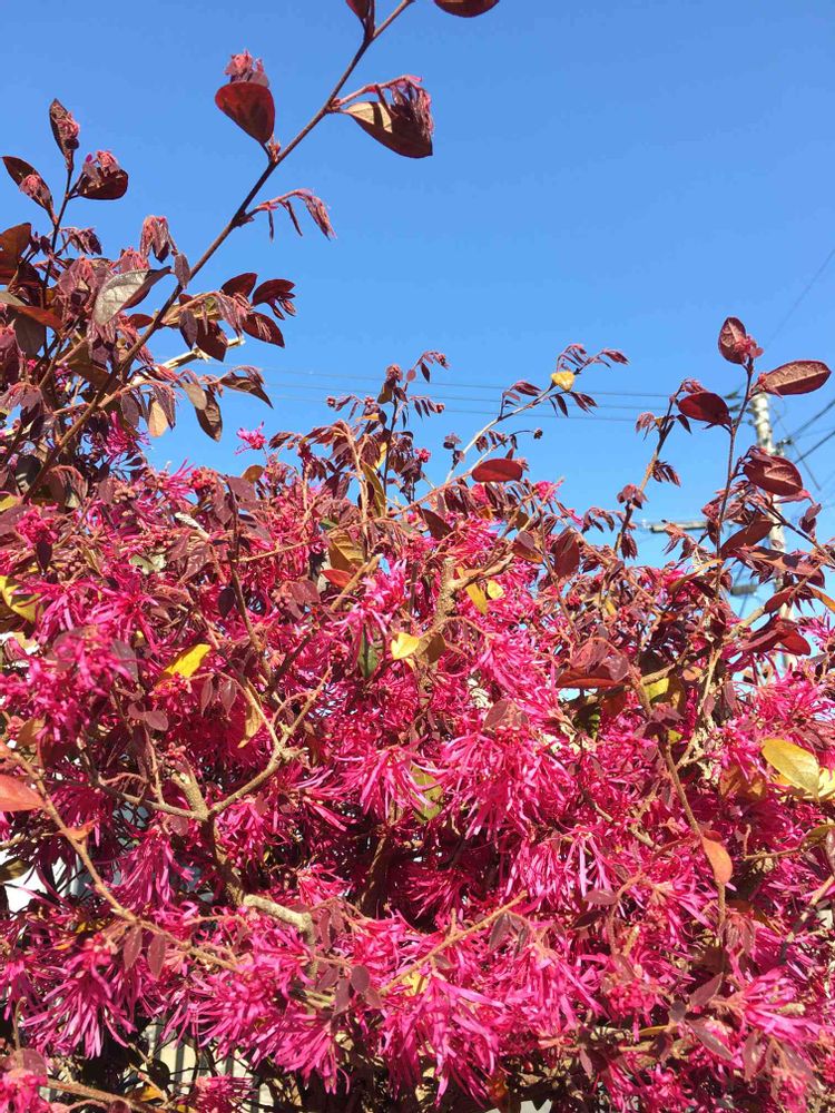 小さな庭,べにばなときわまんさく,空と花の投稿画像