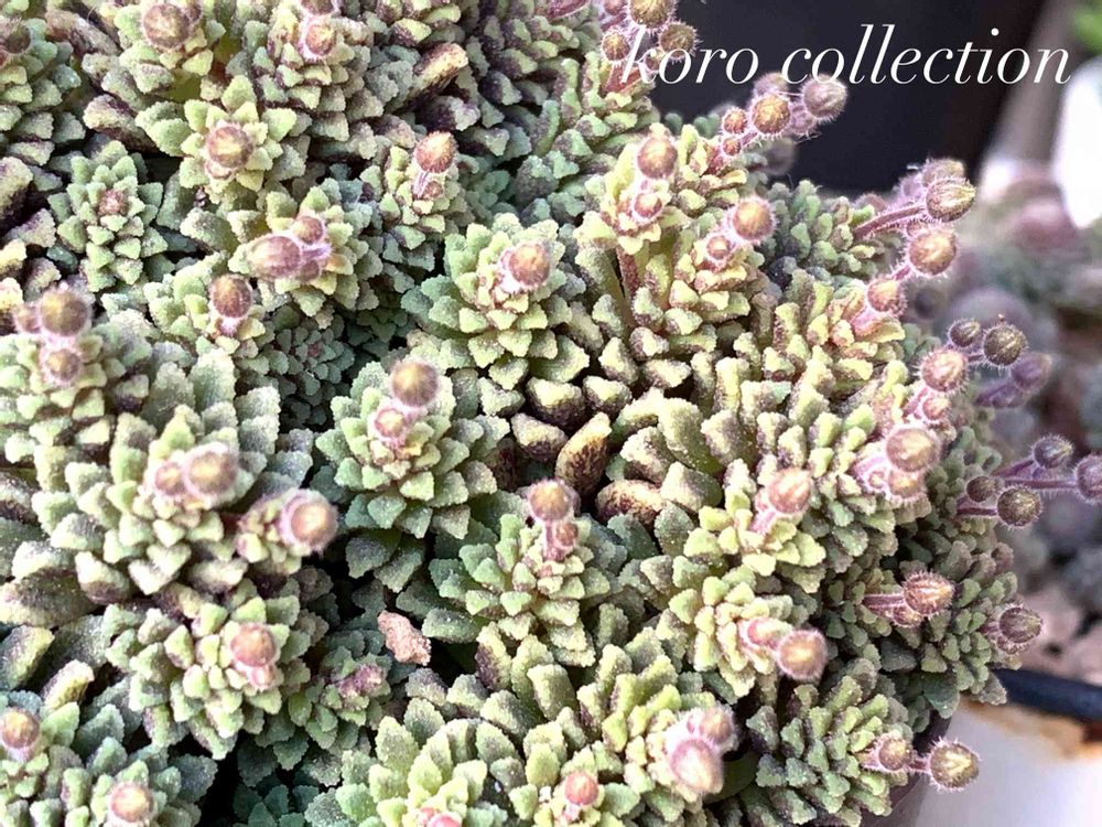 ロゼット直径7~15ミリ、茎の太さは2ミリ葉の密度は荒い。葉頂部と周縁に0.2~0.3ミリの小突起が見られる。