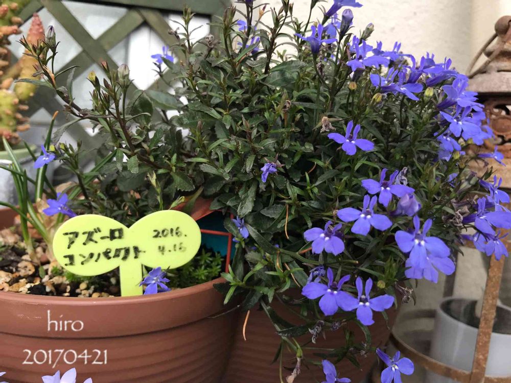 以前、ヒロリンパさんが教えてくれたのですが、アローズコンパクトはサントリーがロベリアを品種改良したものらしいです。確かにロベリアより暑さにも寒さにも強いです。探して見てくださいね🤗