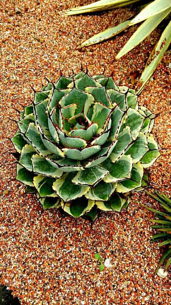 このとげとげ具合がたまらない🌠斑入りで可愛いし良いなぁと思ってタグを探してみてもない。わかる方いますか?直径は40cmくらいあったような…じわじわ気になって