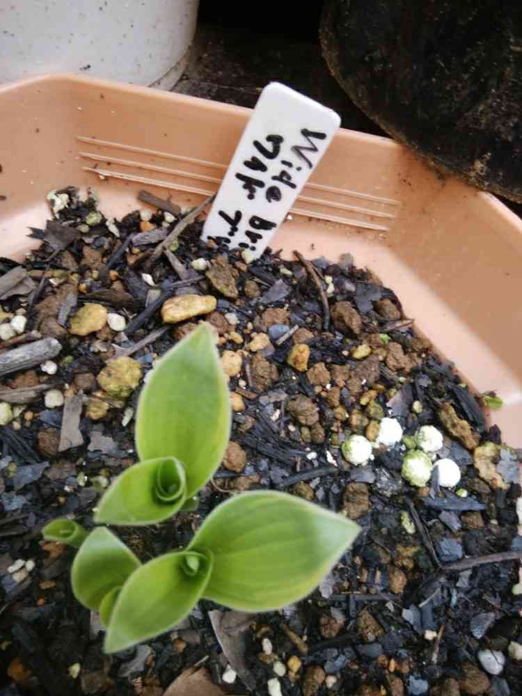 ギボウシ ワイドブリム。ボールドワンとボールドリボンの交配種。ブリムカッブの親種。‘ 広い鍔’??