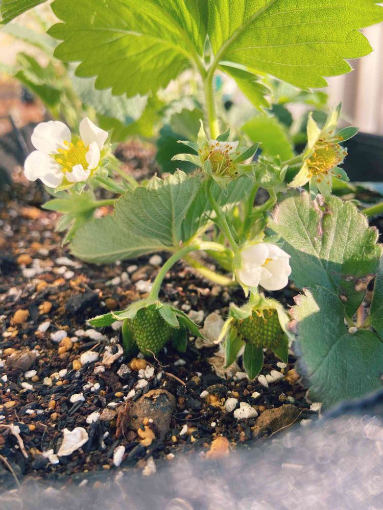宝交早生さん、これは受粉成功したのかな??🍓🍓🍓