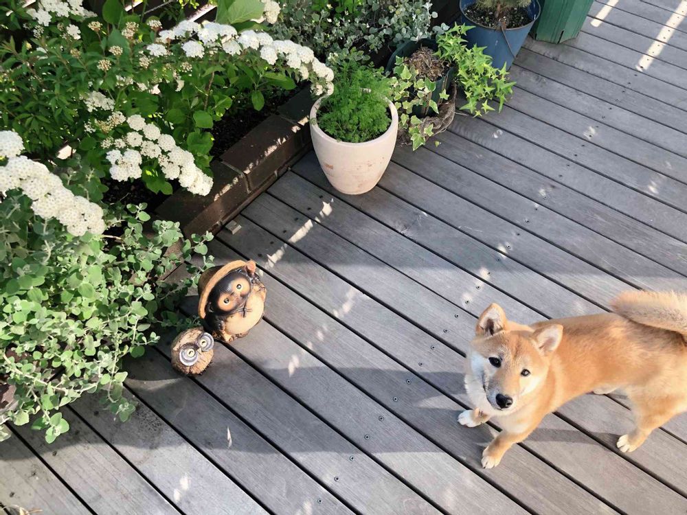 とにかく今は、なんでも口に入れて食べちゃうので、ウッドデッキにはあまり連れて来れないんですよ💦