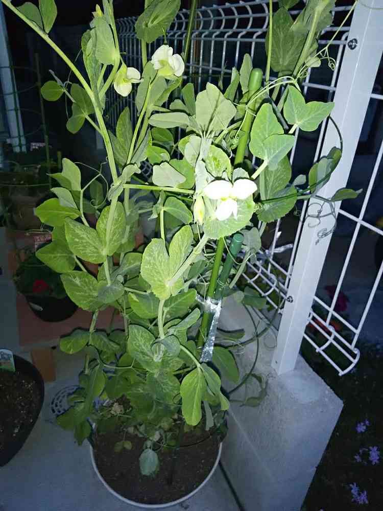 昨日今日で暖かくなり、スナップえんどうに花が一気に咲き始めました(*´ω`*)