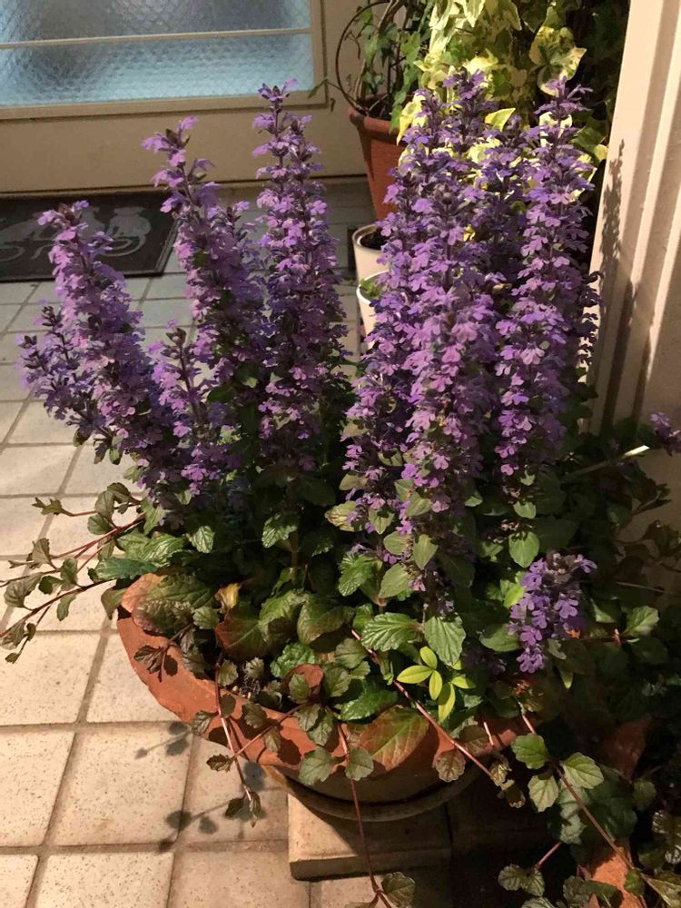 テラコッタのアジュガは栄養が行き届き、花の塔が何と25cmを超えた!