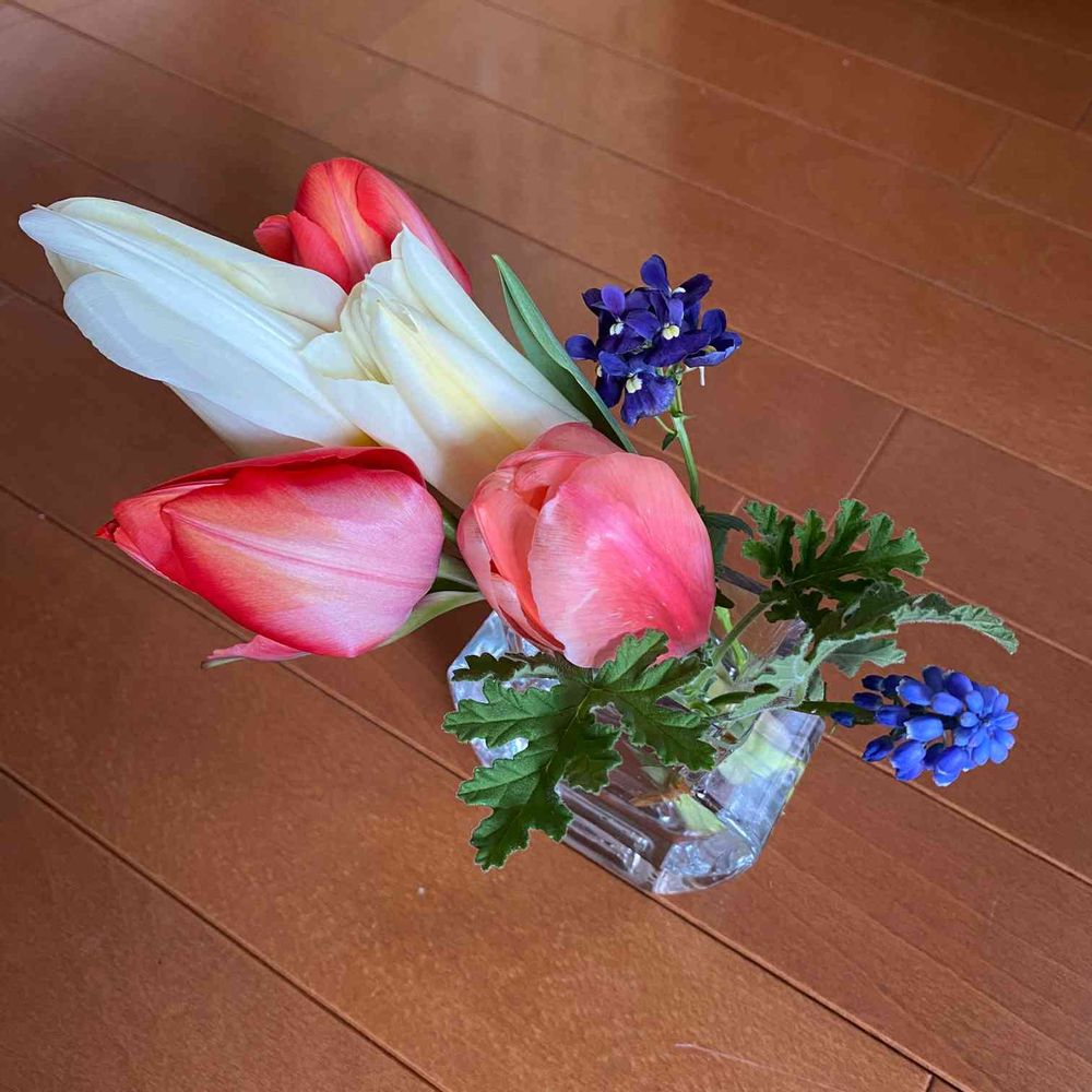 チューリップ,ムスカリ,ローズゼラニウムの投稿画像