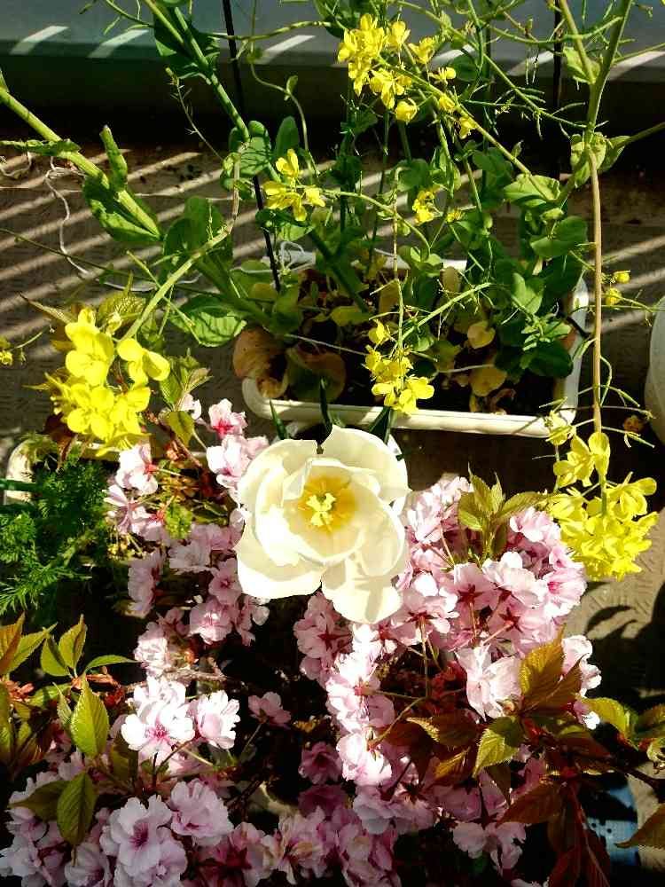 ふふふ☺️集合写真気持ち分かります!みんな可愛らしいですものね!八重桜も満開、チューリップも開花、菜の花の黄色も鮮やかで。春を感じるワクワクする彩りですね!ウチの白いチューリップはもう一息。白菜菜の花は食してしまいました😁🌼