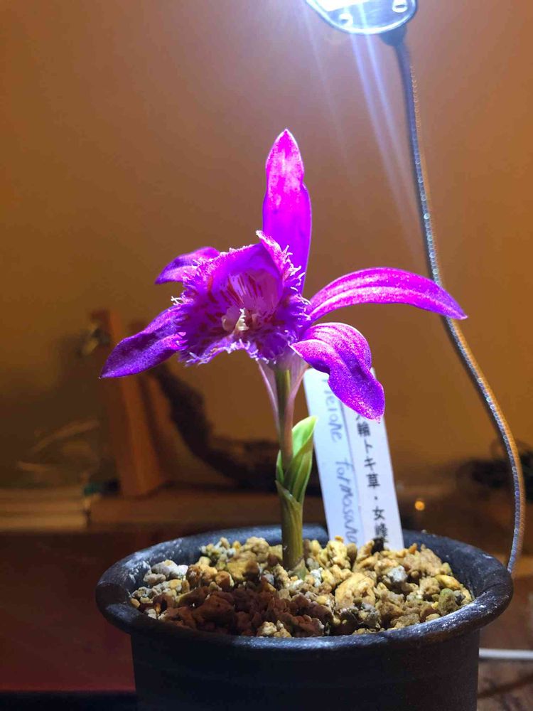 札幌北区の園芸店で300円で購入。カトレアと見紛うような見事な花ですね。Pleione属はセロジネと近縁で、東南アジアに16種ほどが分布しているそうです。