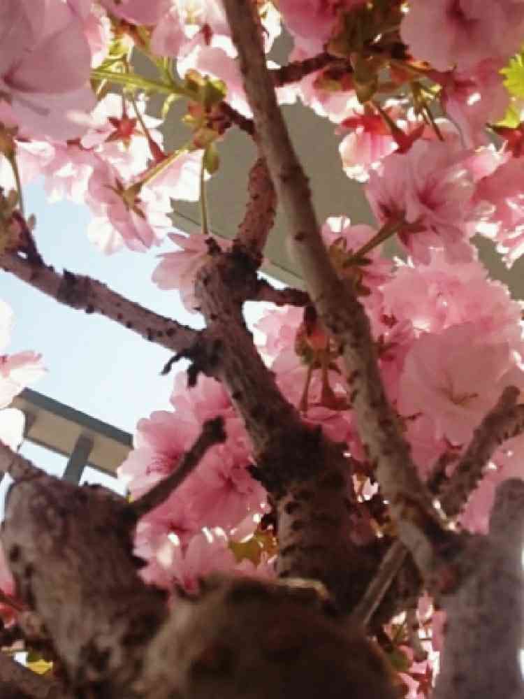 公園の桜の木ならよく見上げて見ますので、盆栽の八重桜🌸も見上げてみました!