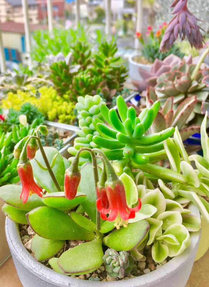 エケベリアたちと並ぶと ちょっと地味かな〜と見てたけど 赤いタコウインナーみたいな形も可愛いくて😍意表を突かれました💕