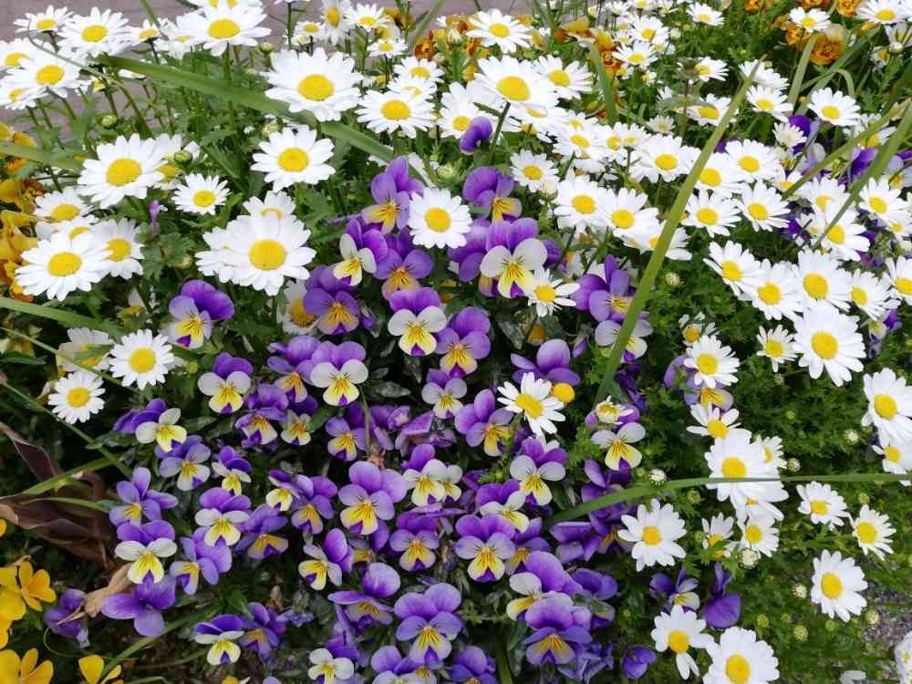 私の好きな花壇のお花です。ノースポール、パンジービオラです。