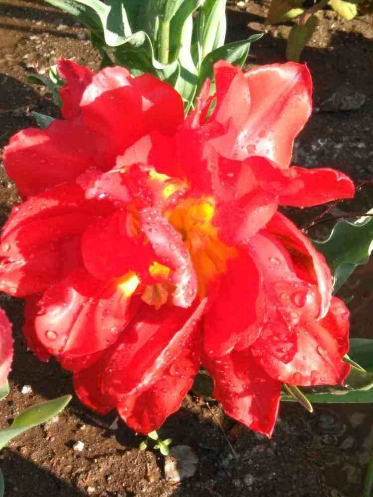 お出かけ先,職場の花壇,チューリップ満開の投稿画像