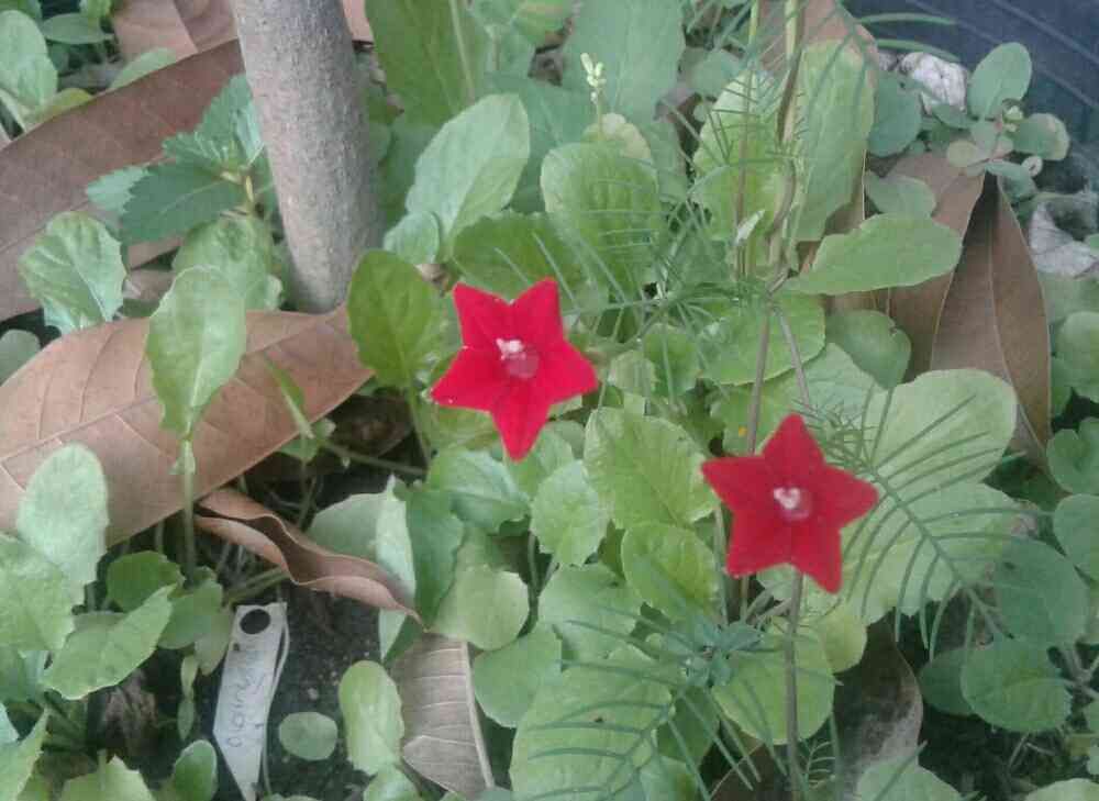 我が家のマンゴーの鉢に絡まって来たルコウソウです。日本では園芸植物ですが、タイでは雑草として勝手に生えています。邪魔にはならないので、しばらく放置しとこ。