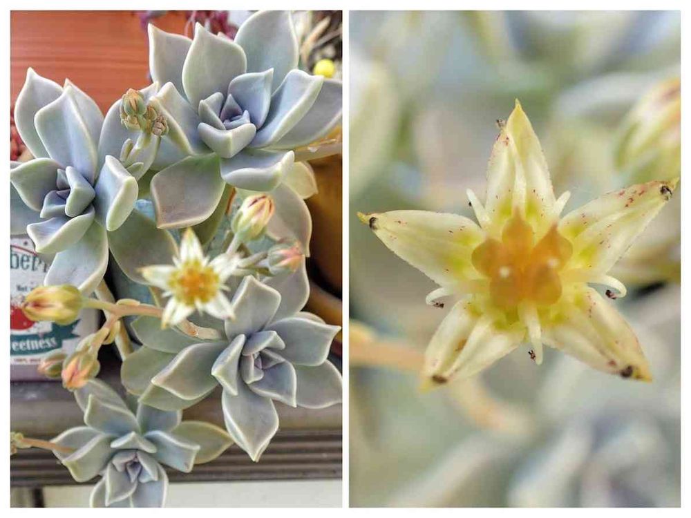 グラプトペダルム・朧月にお花が咲きました(*^▽^*)ちっちゃいけれどお星さま⭐みたいで可愛らしいですね😍😻